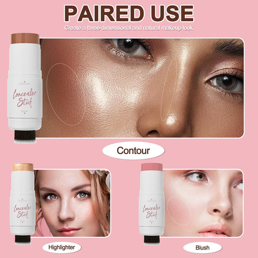 3 Pcs FAIR-COOL Contour Stick Set,Cream Blush & Highlighter Bronzer Pen,Long Lasting & Smooth Natural Face Contouring Illuminator,Professional Makeup Kit for All Skin