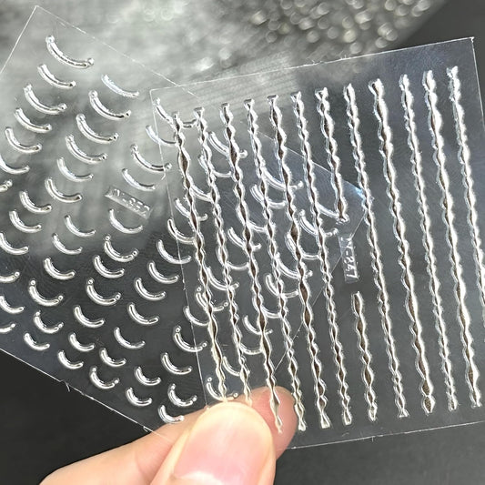 30 Sheets Silver Nail Art Stickers 3D Self-Adhesive Line Nail Decals Silver Star Nail Stickers Moon Heart Nail Supplies Nail Art Design for DIY Acrylic Nails Decoration Accessories for Women