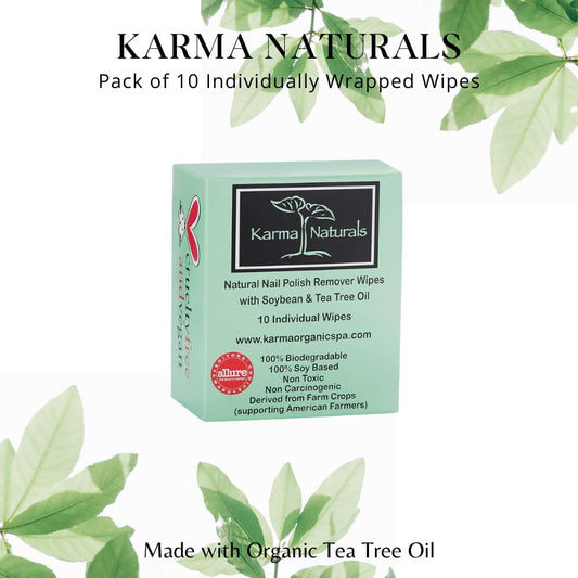 Karma Organic Natural Nail Polish Remover Wipes with Soybean and Rose Oil, 100% Soy Based, Non-Toxic, Vegan, Cruelty-Free – Pack of 10
