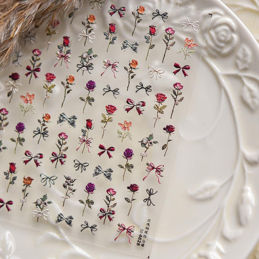 5D Embossed Rose Nail Stickers Flower Nail Art Floral Nail Decals Cute Stickers for Nails Designs Self Adhesive Nail Art Supplies & Decorations for Women Girls 1 Sheet