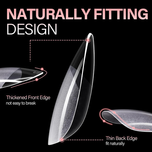 AILLSA Short Almond Nail Tips, 15 Sizes 240PCS Preshaped Soft Clear Gel Nails Tips Full Cover False Nails Tip Short Almond Shaped Tips