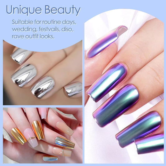 Allstarry Chrome Nail Powder 4 Colors Metallic Mirror Effect Pigment Chrome Iridescent Nail Glitter Magic Unicorn Glitter Dust Kit for Gel Polish Nail Art Decoration Resin Craft, Festivals