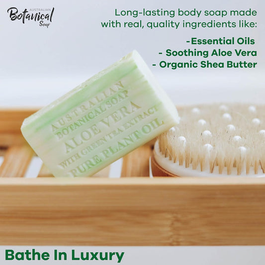 Australian Botanical Soap, 6.6 OZ, Aloe Vera and Green Tea Extract, Triple Milled Bars made with a Natural Soap Base and Enriched with Organic Shea Butter, Pack of 8