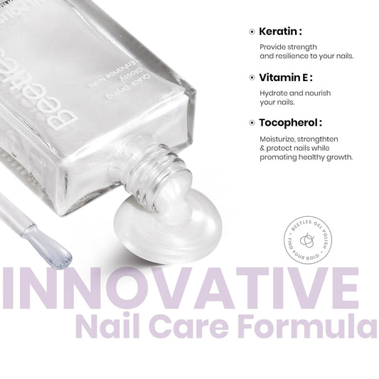 Beetles 2 in 1 Base & Top Coat Nail Polish, Clear Nail Polish Fast Drying & Natural Nail Strengthen, Glossy Effect for Nail DIY Salon at Home Gifts for Women