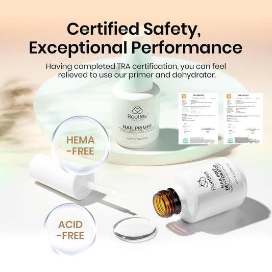Beetles 20ml Nail Primer for Gel Nail Polish, Hema Free Dehydrator and Primer Bond Acid-Free Fast for Acrylic & UV Gel Gift for Women