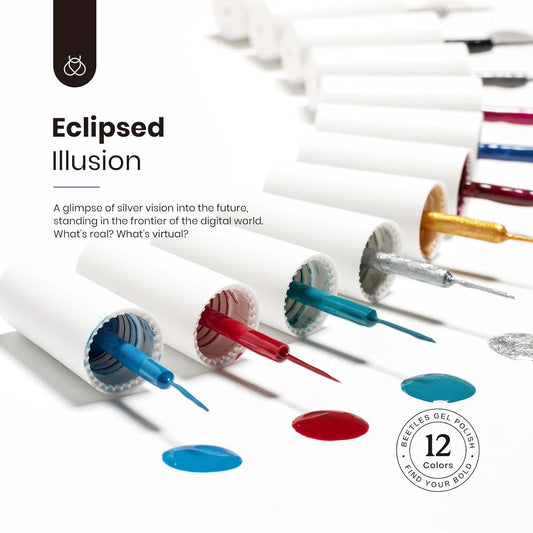 Beetles Nail Art Gel Liner Polish 12 Colors Reflective Glitter Gel Nail Polish, Gold Silver Pink Blue Purple Brown Black Kit Soak Off Uv Nail Art Design Set Summer Manicure Gifts for Women