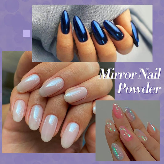 Born Pretty Chrome Nail Powder Metallic Mirror Effect Pigment Iridescent Mermaid Pearl Auroras Nail Powder Glitter Dust Kit for Gel Polish Nail Art Decoration