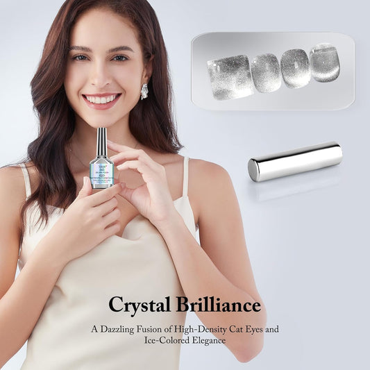 Cat Eye Gel Nail Polish with Magnet Stick, 15ml Magnetic Gel, Create Stunning Cat Eye Effects for DIY Manicures, Long-Lasting, Salon-Quality Finish, Silver Glow