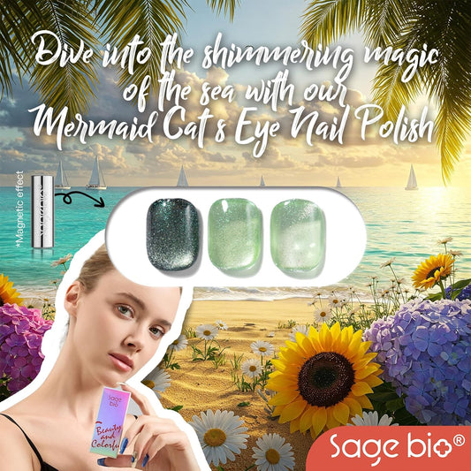 Cat Eye Gel Nail Polish with Magnet Stick, 15ml Glitter Holographic Nail Polish, Magnetic Effect Gel for Home DIY Manicure Gift, Jelly Green
