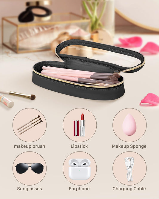 Clear Travel Makeup Brush Holder, Leather Makeup Brush Toiletry Bag, Portable Cosmetic Brush Case, Transparent Waterproof Makeup Brush Storage Bag, Black
