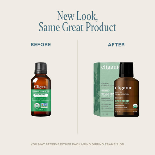Cliganic Organic Peppermint Essential Oil, 1oz - 100% Pure Natural Undiluted, for Aromatherapy | Non-GMO Verified (Packaging May Vary)