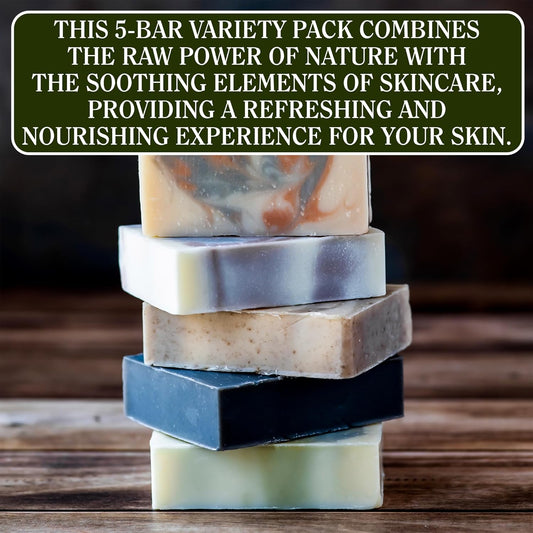CompassSoap Natural Soap for Men | Skin-Friendly, Hand Made Soap Bar Gift Set | Best Exfoliating and Cleansing Bar Soap for Men | 5 Oz. Variety Pack of 5
