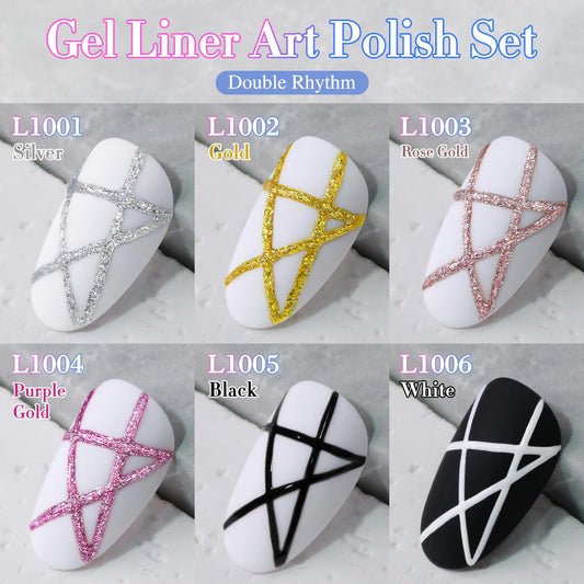 Double Rhythm 6 Colors Cat Eye Gel Polish Set Shimmer Glitter with Magnet Holographic Reflective Magnetic UV Nail Art Kit (6-Kit-47)