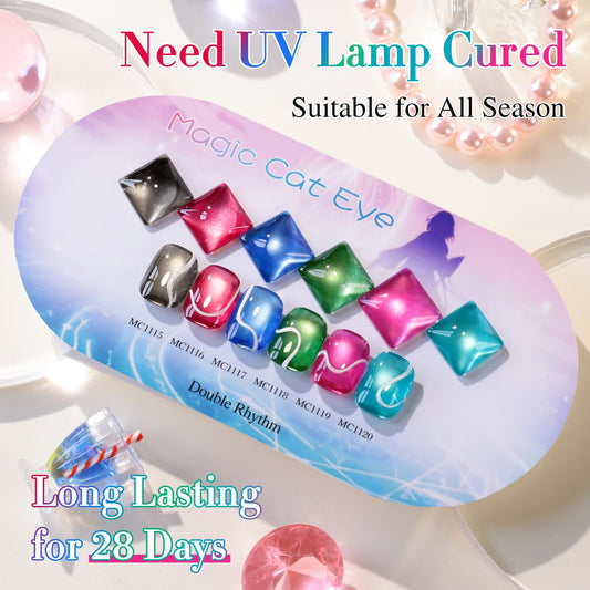 Double Rhythm Cat Eye Gel Polish Set 6 Colors Shimmer Glitter with Magnet Holographic Reflective Magnetic UV Gel Polish Art Kit (Glass Jelly Nude Pink 6-Kit 35)