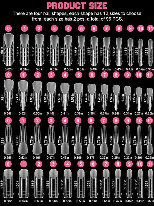 EBANKU Poly Gel Nail Forms - 96PCS Dual Forms for Builder Nail Extension, 4 Style 12 Size Dual Forms Set with 2.5oz Slip Solution, Brush, File, 5PCS Clips