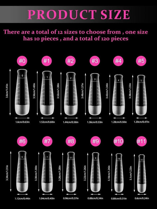 EBANKU Poly Gel Nail Forms, 120Pcs Coffin Matte Dual Nail Forms Clear Nail Molds Square Full Cover Nail Tips for Nail Extension Nail Art DIY 12 Sizes