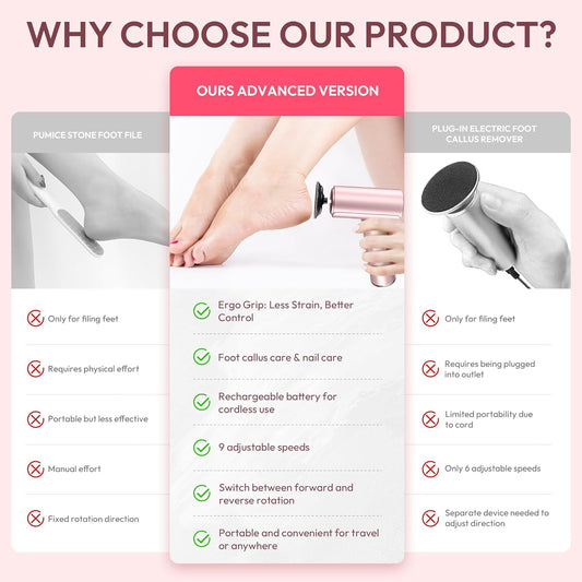 Electric Foot Callus Remover with 60 Pcs Sandpaper Discs, Adjustable Speed Electric Foot File Grinder, Professional Pedicure Tool for Dead Skin & Cracked Heel