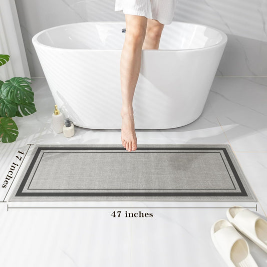 chakme Bathroom Rugs Mat 47x17, Ultra Thin Non Slip Bath Rug Runner Quick Dry Absorbent Bath Mat for Bathroom, (Light Beige, 47"x17")