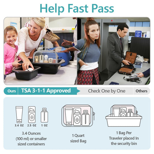 PACKISM TSA Approved Toiletry Bag - 3 Pack Quart-sized Clear Toiletry Bag with Zipper, Clear Makeup Bags Fit Travel Size Toiletries, Carry-onTravel Bags, Light Pinkish Purple