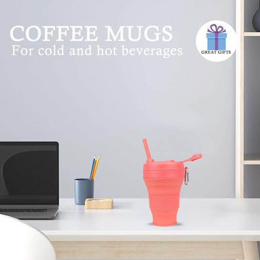 Silicone Coffee Cup with Straw lid Collapsible Cups for Traveling 20oz Lightweight Folding Water Mug for Picnic Hicking Camping Climbing