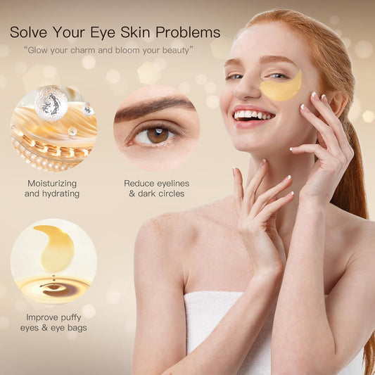 Under Eye Patches (24K Gold, 60PCS) - Under Eye Mask for Puffy Eyes, Fine lines, Dark Circles and Puffiness, Collagen Skin Care Products