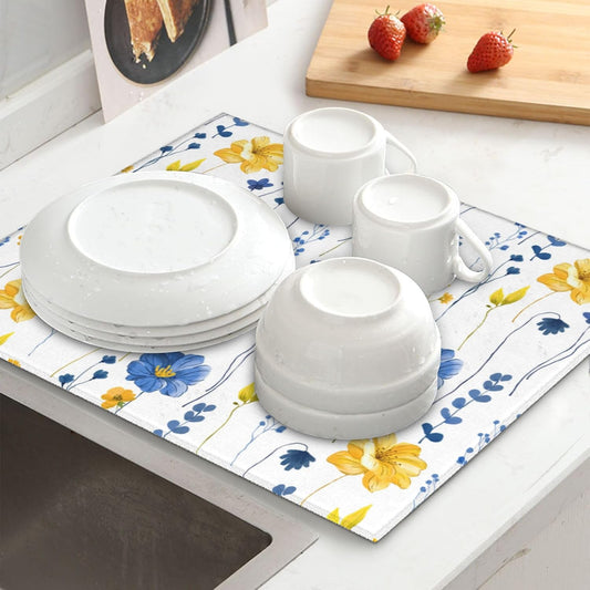 4th of July Dish Drying Mat 16x18 inch Patriotic Floral Fast Dry Microfiber Reversible Dish Drainer Rack Pad Kitchen Counter Accessories