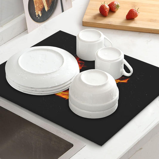 Red Rose Dish Drying Mat 18x24 inch Romantic Floral Absorbent Microfiber Sink Counter Dishware Drainer Pad for Kitchen Coffee Bar Decor