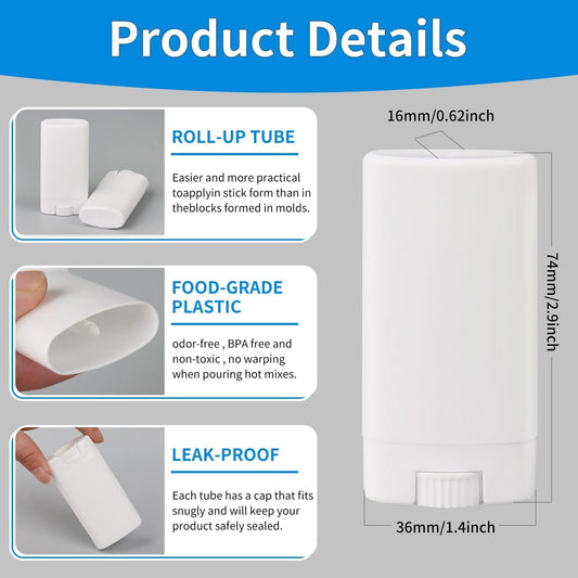 LotFancy Lip Balm tubes Empty, 60PCS 5.5ml (3/16 Oz), Clear Lip Balm Container Tubes with White Caps, BPA Free & Leak Free, Refillable