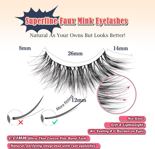Eyelashes Natural Cat Eye Lashes Wispy C Curl 16mm Strip Lash False Eyelashes Fluffy Eye Lashes 3D Volume Wispy Eyelash Siligli 7 Pair