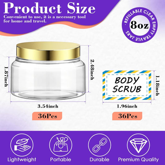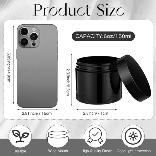 4 oz Amber Plastic Cosmetic Jars Leak Proof Container with Black Lid for Cream, Lotion, Powder, ointment, Beauty Products etc, 12 Pcs.