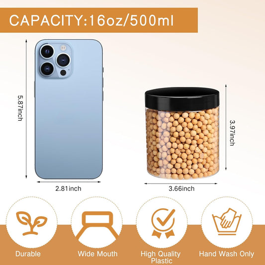 8 oz Amber Plastic Cosmetic Jars Leak Proof Container with Black Lid for Cream, Lotion, Powder, ointment, Beauty Products etc, 12 Pcs.