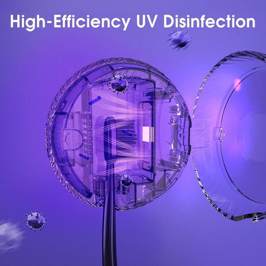 UV Toothbrush Sanitizer and Holder, Portable Travel Case and Cover, Toothbrush Cleaner Powered by AA Battery or USB-C, Fits Most Brushes
