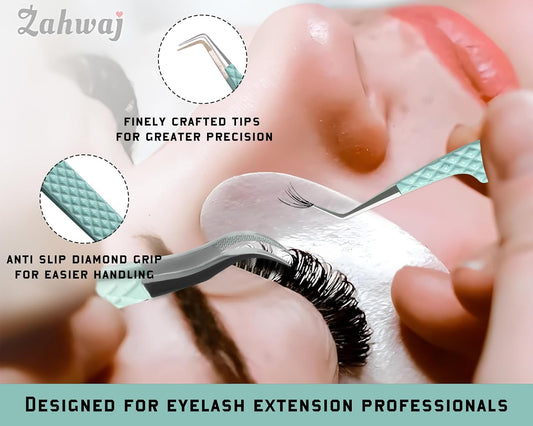 Ms.Queen Lash Tweezers for Eyelash Extensions,Precision 2Pcs Fiber Tip Grip 90 Degree Volume and Dolphin Isolation Lashing Tweezers Set