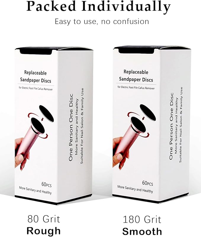 - Package includes: 60PCS replacement sandpaper discs (Rough 80 Grit) , 60PCS replacement sandpaper discs (Super Smooth 180 Grit).