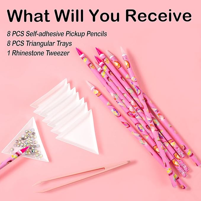 - 【VALUE FOR MONEY】: You will receive 8 long rhinestone pick up pencils, 8 rhinestone trays and 1 nail tweezer.