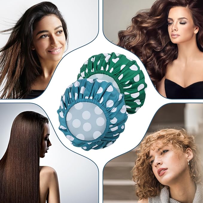 - Shower Cap Set: The set provides 2 hair ties for those with long hair, which makes wearing the shower cap easier and faster. The hair tie is also very beautiful for daily use.