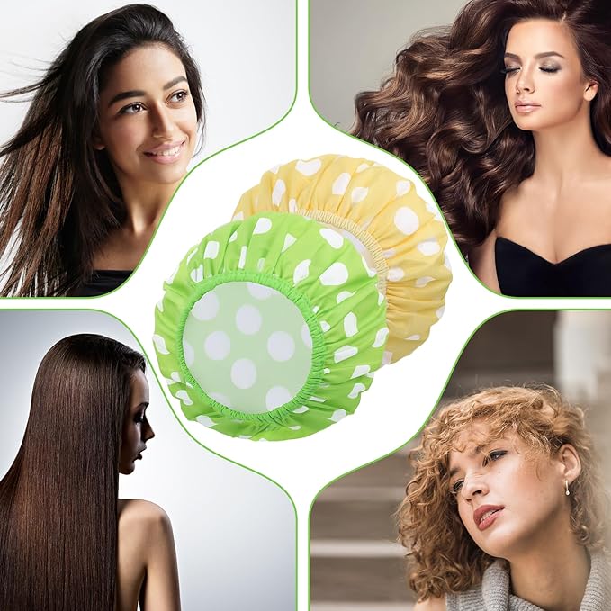 - Shower Cap Set: The set provides 2 hair ties for those with long hair, which makes wearing the shower cap easier and faster. The hair tie is also very beautiful for daily use.