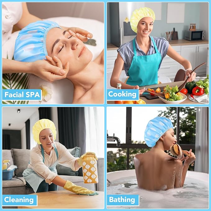 - Effective Protection: Not only can you use a shower cap to keep your hair dry when bathing, but you can also block dust and oily fumes when cleaning or cooking.