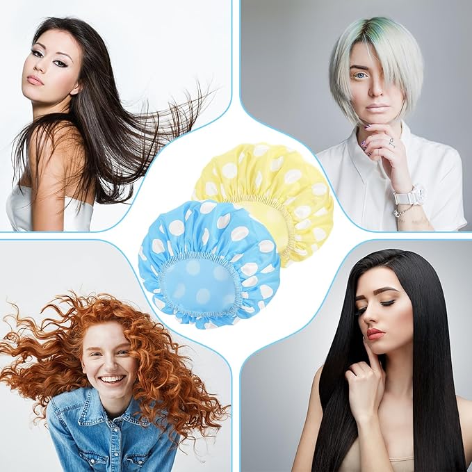- Shower Cap Set: The set provides 2 hair ties for those with long hair, which makes wearing the shower cap easier and faster. The hair tie is also very beautiful for daily use.