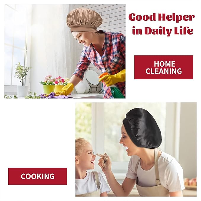- A GOOD HELPER OF LIFE: Silk bonnet not only a bonnet for sleeping, but also wearing when washing, beauty, makeup, and housework. As well as 2 colors are used to match home clothes of various colors to meet daily needs.