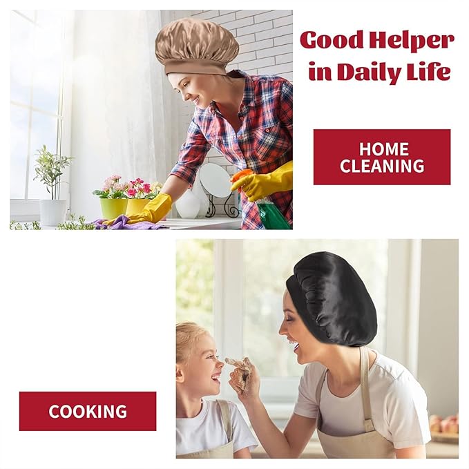 - A GOOD HELPER OF LIFE: Silk bonnet not only a bonnet for sleeping, but also wearing when washing, beauty, makeup, and housework. As well as 4 colors are used to match home clothes of various colors to meet daily needs.