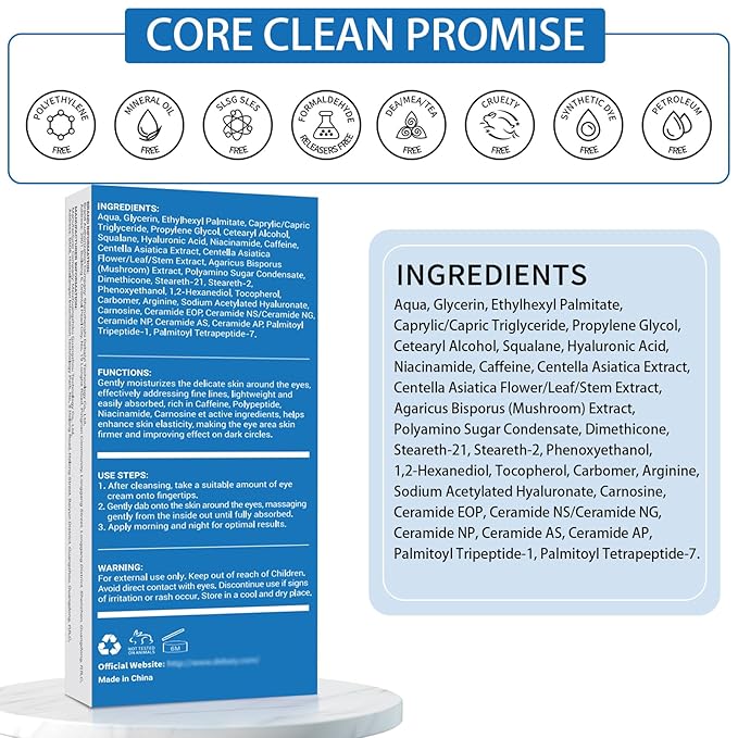 - Special Feature : Multiple Plant Extracts: Provide soothing and nourishing benefits., Niacinamide: Brightens the skin and reduces the appearance of dark circles., Caffeine: Known for its ability to reduce puffiness and dark circles., Polypeptide: Helps to improve skin elasticity and firmness., Multiple Ceramides: Strengthen the skin barrier and improve texture. Multiple Plant Extracts: Provide soothing and nourishing benefits., Niacinamide: Brightens the skin and reduces the appearance of dark circles., Caffeine: Known for its ability to reduce puffiness and dark circles., Polype… See more