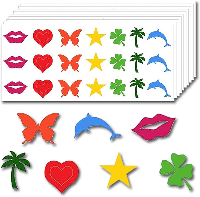 - Diverse Styles:You will receive 7 styles of sun tattoo stickers for tanning, including heart-shaped, kiss-lip, butterfly, dolphin, and other stylish designs.(20 sheets with 21 pcs each sheet)