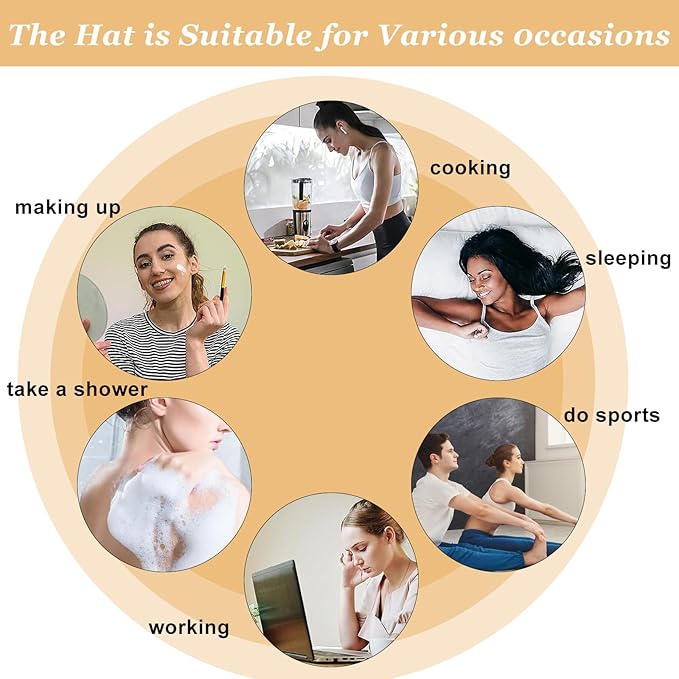 - 【Useful】Bonnet can wrap the hair well, after using the hair mask will not stain the bed sheet when sleeping, will not lose color.It can also be used as a shower cap to protect your hair from getting wet when bathing.You can wear it anytime. No matter makeup, cleaning, cooking, studying, working etc. It's lightweight, won’t add much extra weight on your head.
