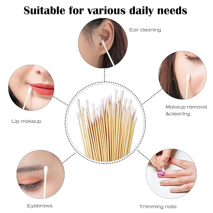 - Compacted cotton tip with more lint than regular long swabs not easily unravel.Bamboo handle is not easy to break, comfortable and safe for use.