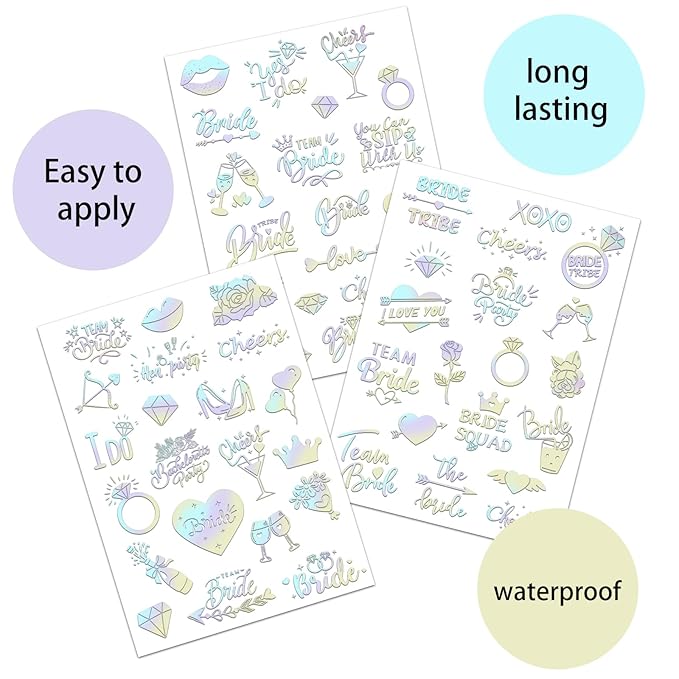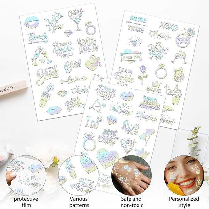 - Variety Pack: Includes 60 styles of bachelorette party temporary tattoos for endless fun.