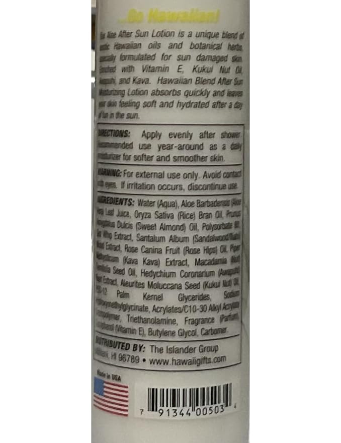 - Unique Aloe After Sun Lotion blend of Hawaii oils and botanical herbs.