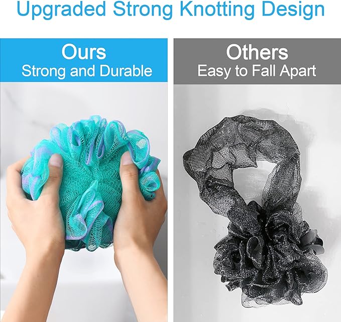- Multiple colors: There are four elegant colors in the shower loofah pack, so you can choose the color you like to match your bathroom decor. It is also a great idea to give these shower sponge to friends and family as gifts or stocking stuffers.