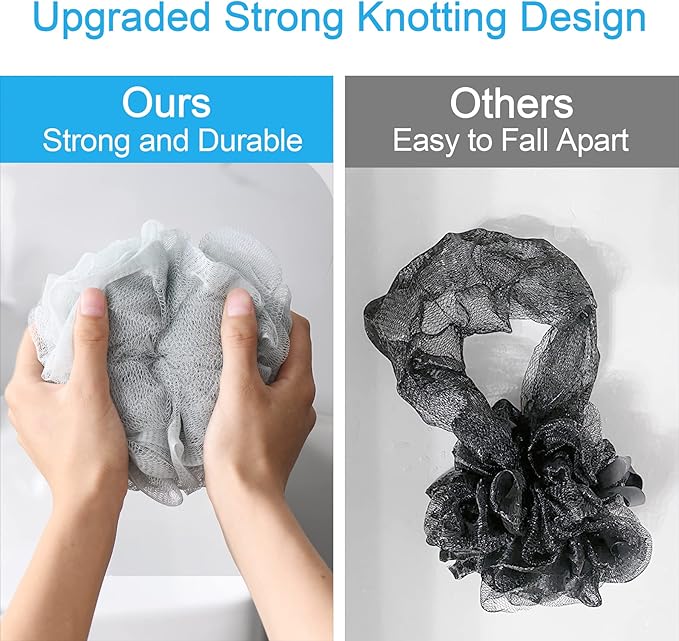 - Strong knotting design: The improved version of the loofah adopts special reinforcement and knotting technology, which greatly enhances the firmness and durability of the internal connection of the bath sponge.