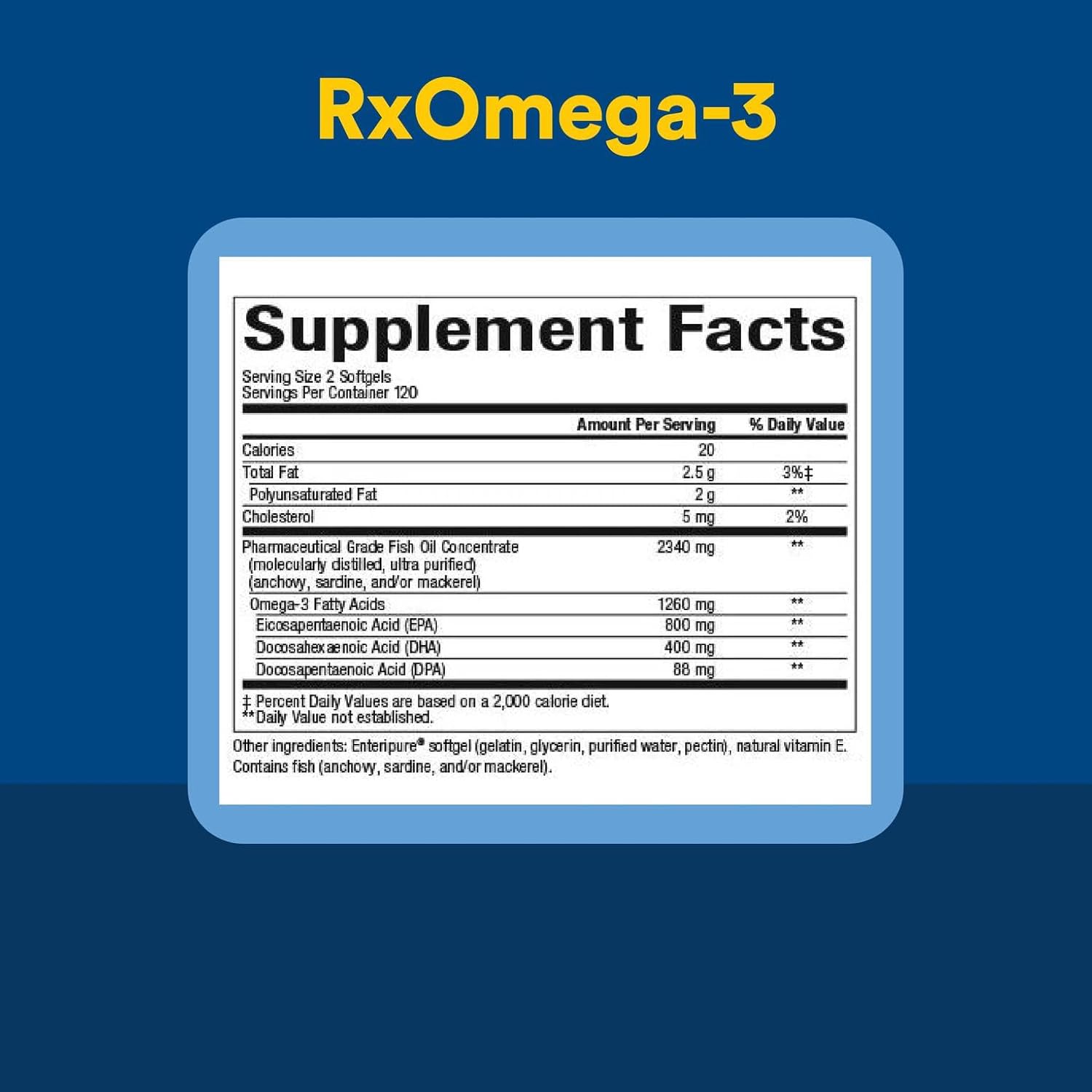 Natural Factors RxOmega-3, Natural Support for Heart Health with DHA and EPA, Daily Dietary Supplement, 120 Softgels